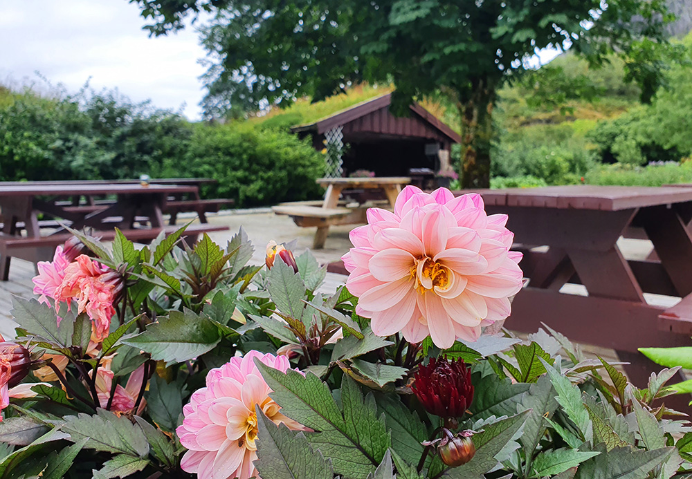 Turistene går videre, på ny hvit grus. Alt som forbedres i hagen er godt avklart med driverne Aina og Ronny Solbakken, sistnevnte Lailas sønn. Kårfolket har blant annet tatt ansvaret for stell av flere hundre blomster, urter og grønnsaker.