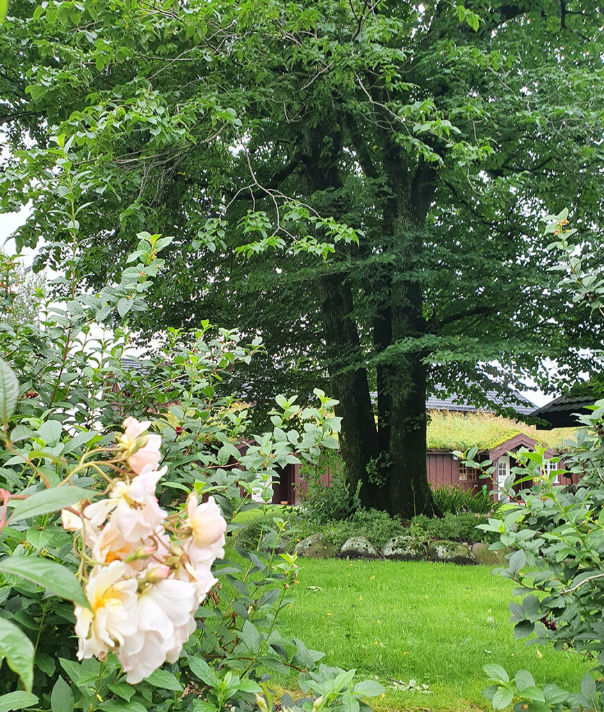 Hagen består av mange bed og på flere steder meldes det om spesiell ro – særlig der hagegrunnlegger Hildur satte ned tuntrærne, som vokser fine og stolte.